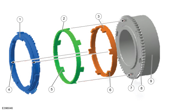 2. Disassemble the sub-assemblies to access the 5th and 6th gear synchronizer rings. Refer to WSM, Section 308-03.