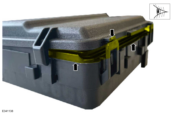 (10). Install the battery tray and battery back into the vehicle. Refer to WSM, Section 414-01.