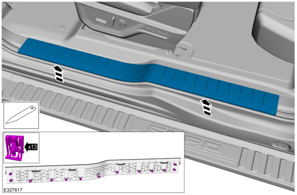 9. Release the clips and remove the left front scuff plate. Refer to WSM, Section 501-12 Instrument Panel and Console, Removal and Installation, Instrument Panel. (Figure 10)