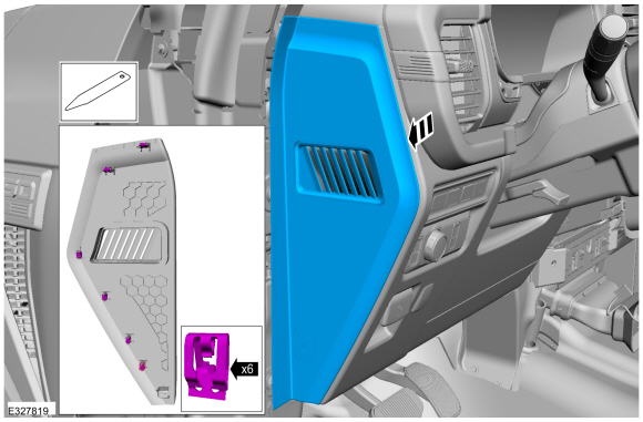 8. Release the clips and remove the left instrument panel trim panel. Refer to WSM, Section 501-12 Instrument Panel and Console, Removal and Installation, Instrument Panel. (Figure 9)