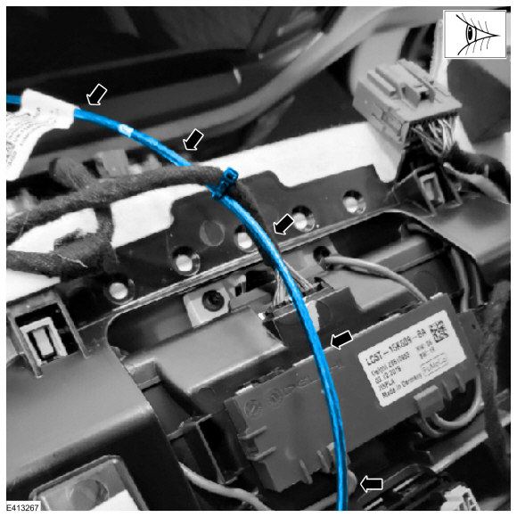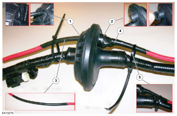 (4). Completely tape the cable to the exterior port or use Motorcraft® RTV Silicone Sealant (service part number TA-31) to seal exterior port. (Figure 16, Callout 4)